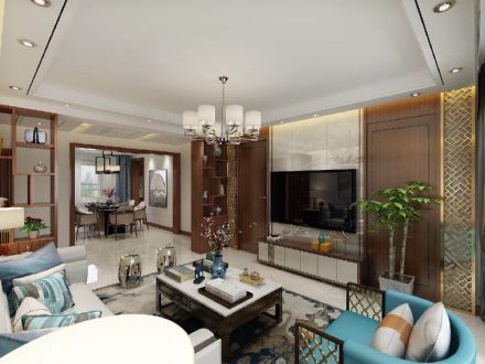 华夏山水名居125平米三居室新中式装修案例风效果图