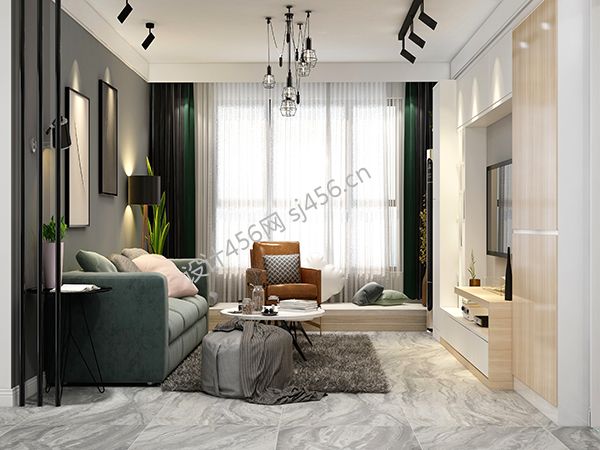 紫堤东郡105平三居室北欧风格装修案例风效果图