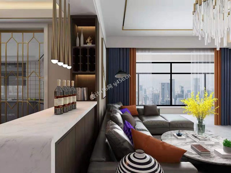 中心城尚书苑136平米轻奢三居室装修案例风效果图