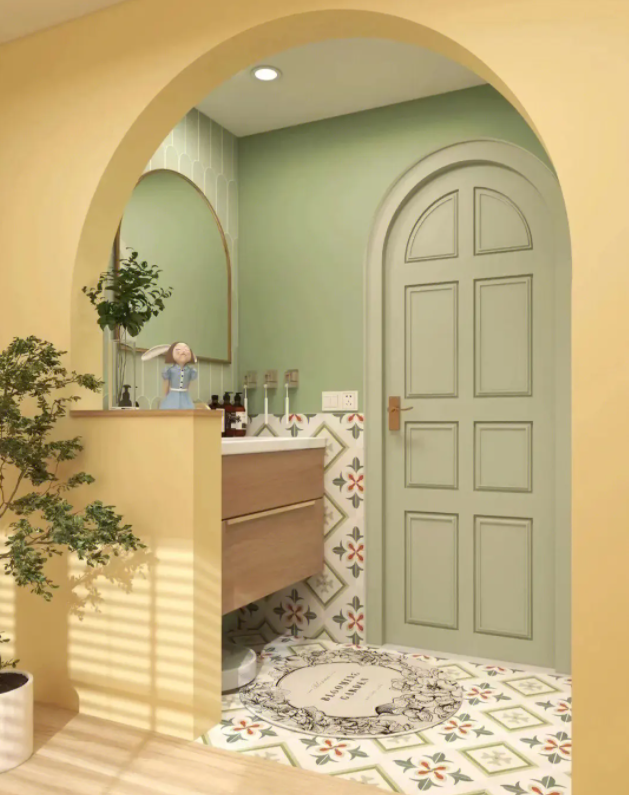 另外就是关于半墙卫生间你要怎么收口的问题,做定制门套?还是收口条,铝条?墙砖收口不精致,墙砖与乳胶漆直碰真的丑,后期还容易开裂,而且踢脚线和收边条也没法收口。当所有都包垭口,只有卫生间用收口条,就会显得不伦不类。