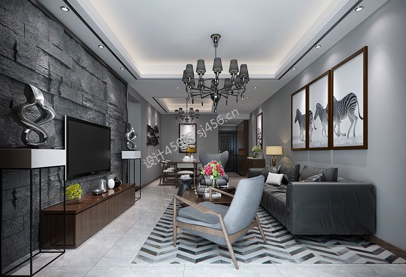 恒弘城150平现代风格三居装修案例赏析风效果图