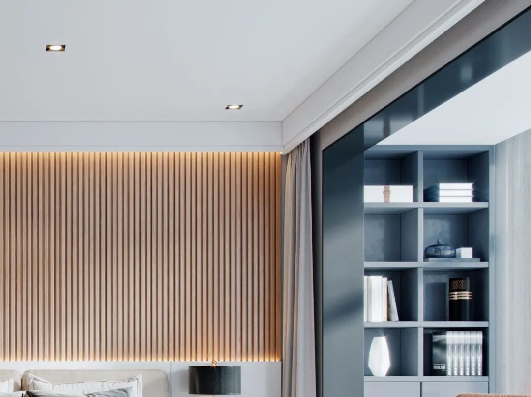 传统的吊顶,通常都会在吊顶底部设置嵌入式筒灯,但是窄边双眼皮吊顶却无法设置这种内嵌式的筒灯或者射灯。所以目前来看,貌似是只能依靠空间的主灯来进行照明。