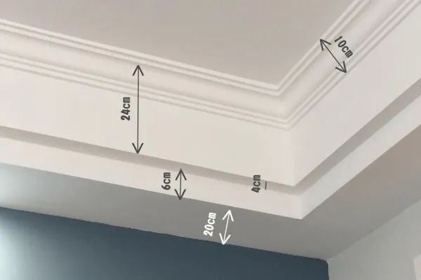 ▲双眼皮吊顶下吊30cm,宽20cm,石膏线10cm,效果如图所示