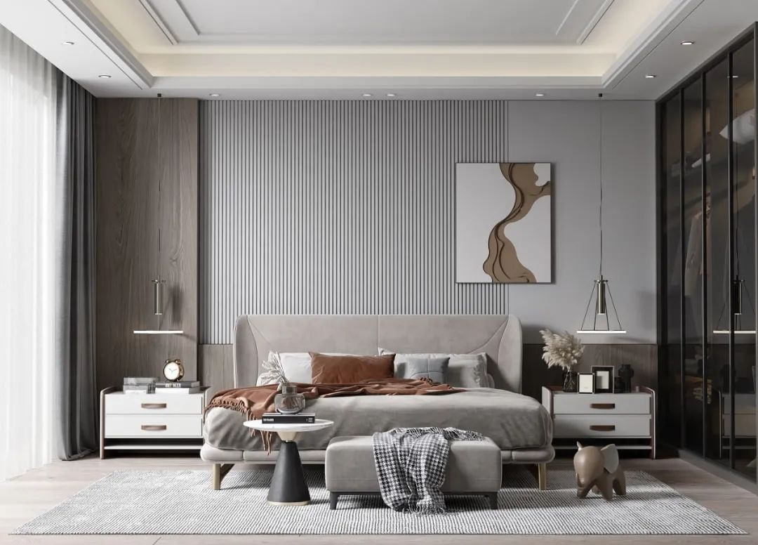 普通的双眼皮吊顶,由于造型简单,大多数都是用在中式风格或者是现代风。如果想要吊顶的造型再丰富一些,还可以在双眼皮吊顶基础上,添加一些石膏线,通常是加在吊顶与楼板相接的阴角部位做顶角线。