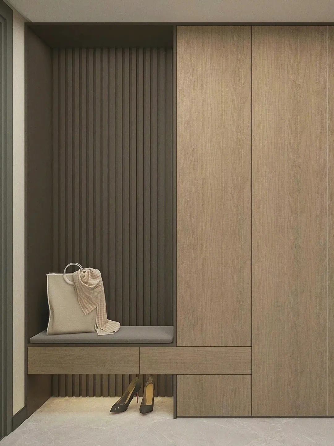 玄关必不可少的就是鞋柜了,鞋柜的设计也是有很多讲究的,首先鞋柜要满足一家人的放鞋子的需求,然后还可以储物曾加整个空间的储物收纳能力。