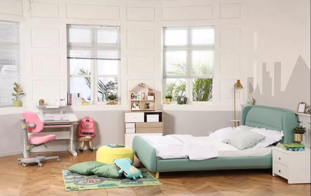 对正在发育中的孩子来说,睡眠是非常重要的,而睡眠区的重点就是床架和床垫。