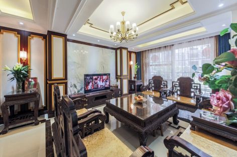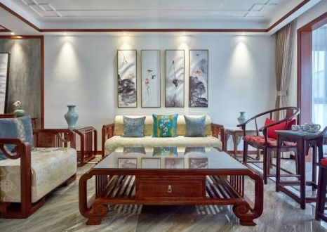 六安荣锋装饰 国悦府142平米新中式风格三居室装修案例