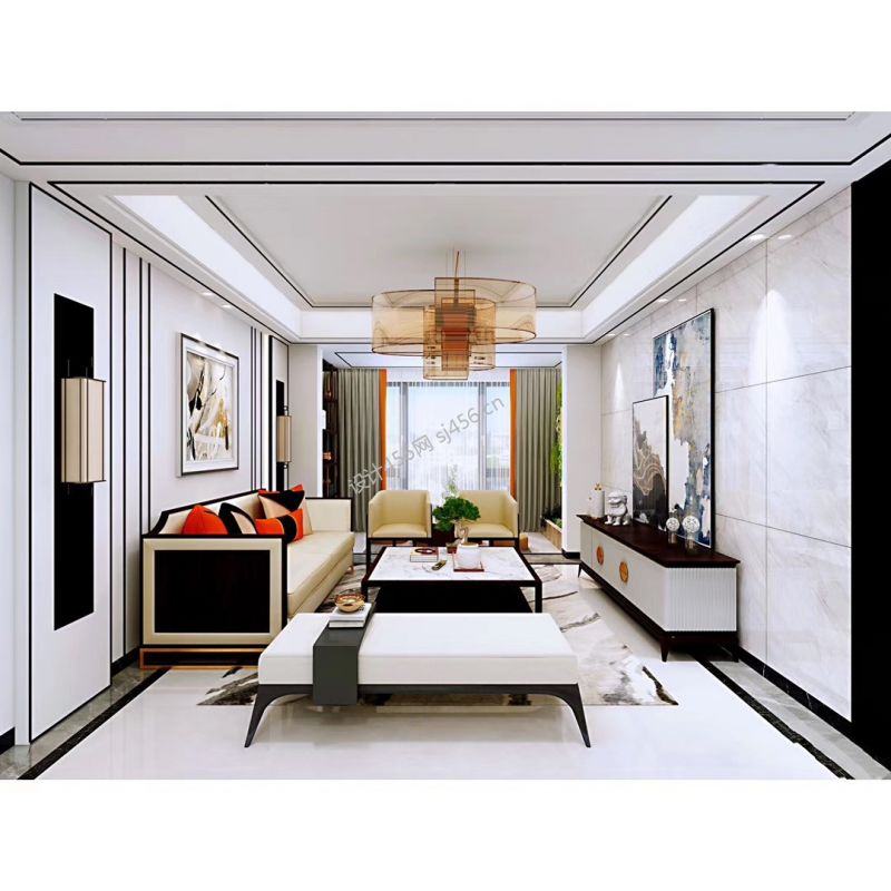 美墅装饰国悦府138平方三居室新中式装修案例风效果图