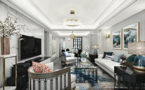 江湾城139平方三居室现代轻奢风格装修案例风效果图