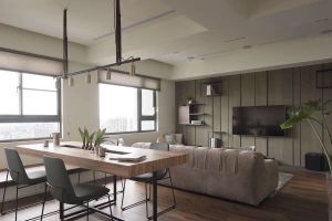 业主想要多功能化个性化空间,注重环保与材质之间的和谐互补,在色彩上达成一个鲜明的配置,空间感顿生明艳,在人与空间的组合中华锦装饰天悦南湖130平方三居室现代简约风格