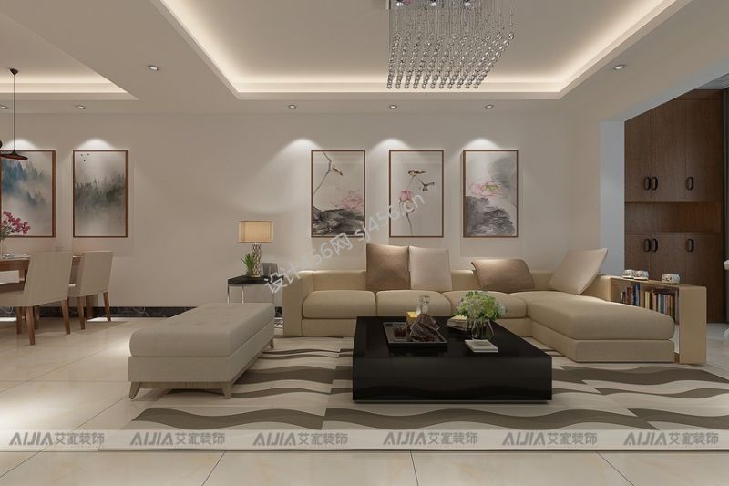香颂诺丁山120平米新中式四居室装修案例风效果图