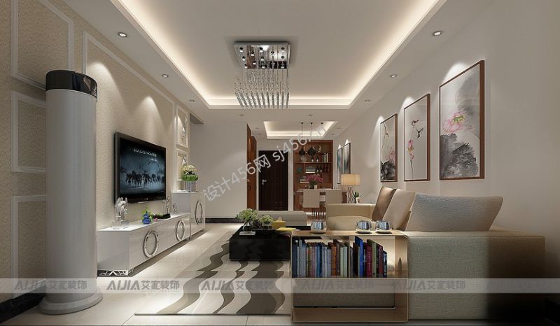 简约风格98平三居室客厅电视背景墙装潢效果图