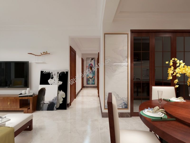 香颂诺丁山120平米新中式四居室装修案例风效果图