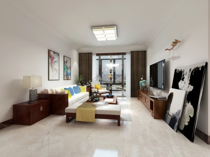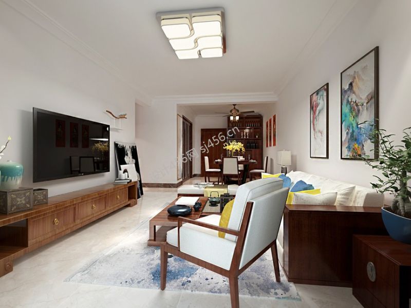简约中式风格100平小户型客厅吸顶灯装修效果图