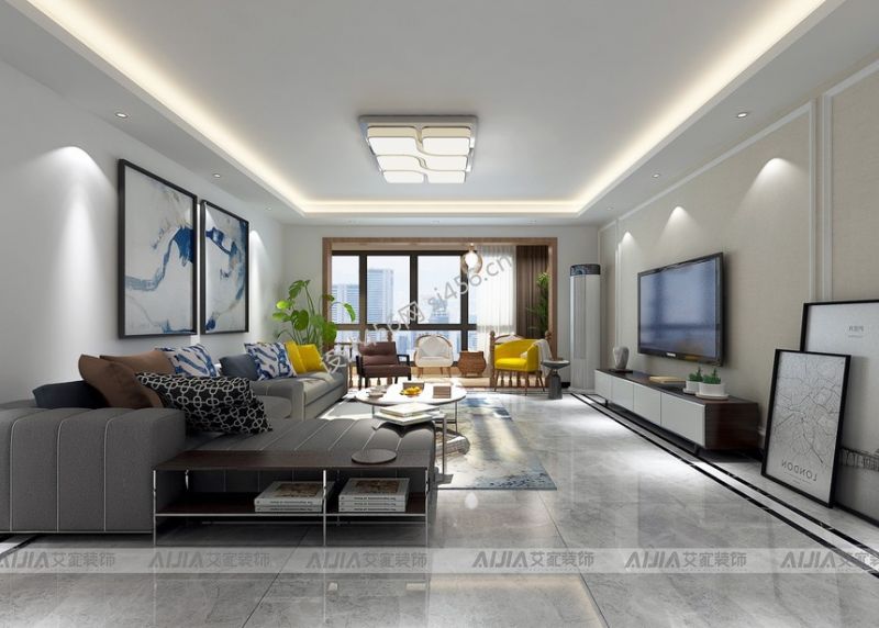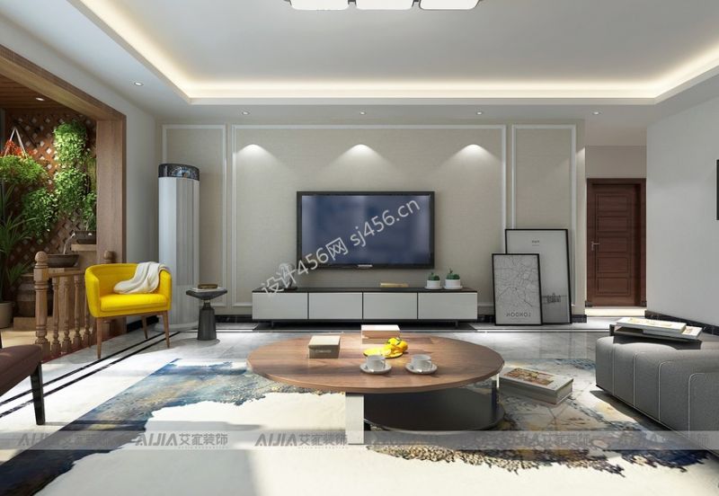 龙腾苑90平米现代简约三居室装修案例风效果图