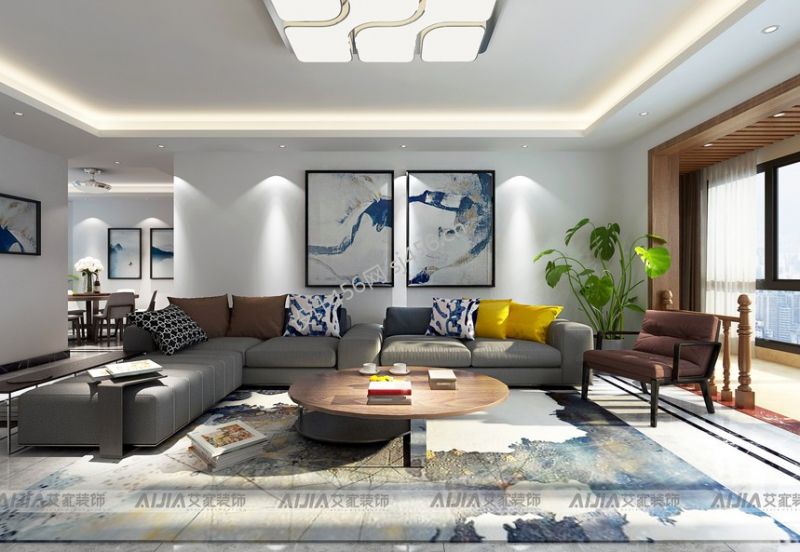 香颂诺丁山120平米新中式四居室装修案例风效果图