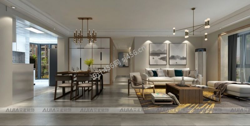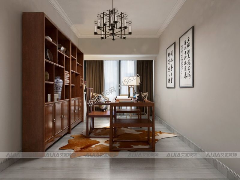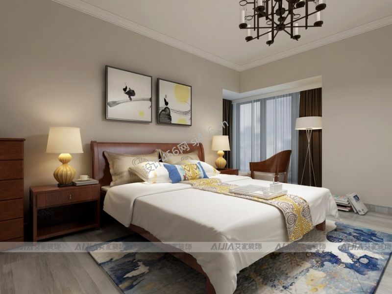 香颂诺丁山120平米新中式四居室装修案例风效果图