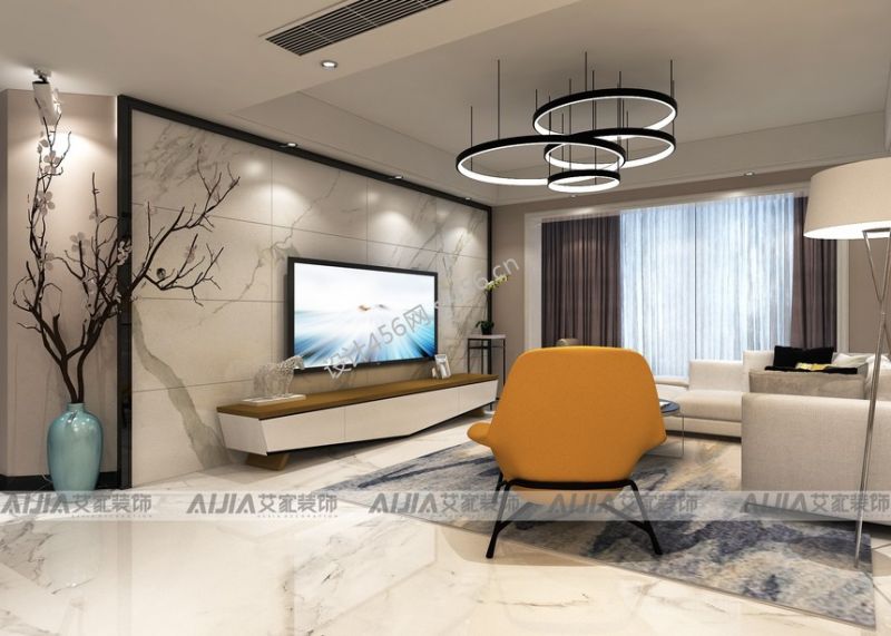 龙腾苑90平米现代简约三居室装修案例风效果图