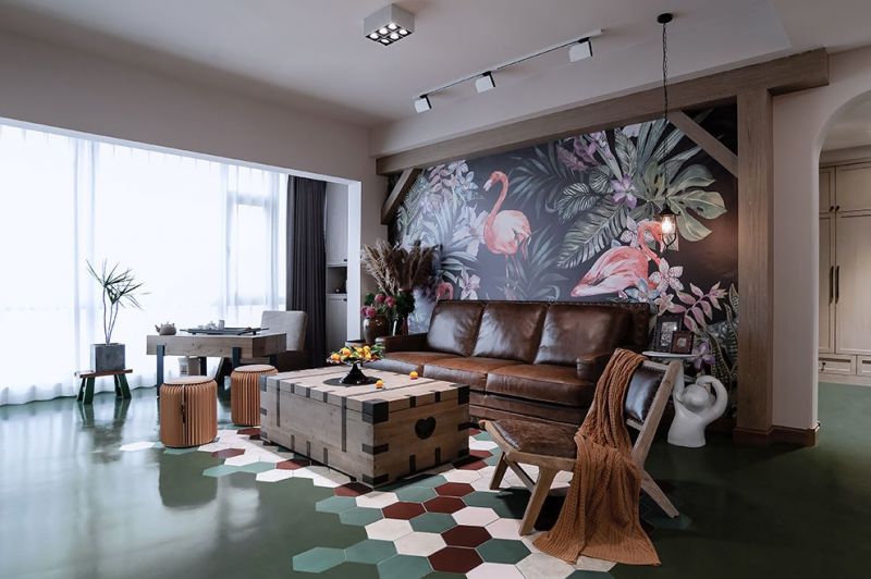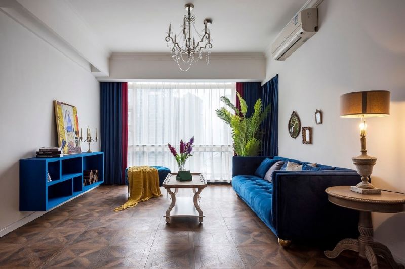 融创果岭海岸复古风格106平米三居室设计效果图案例