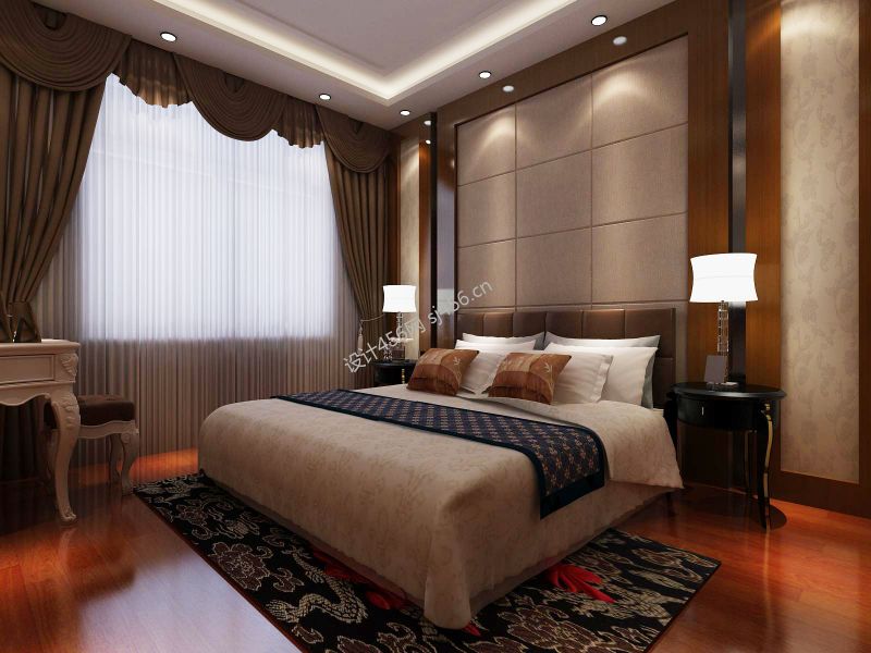 新中式卧室装修效果图大全 布艺窗帘装修效果图片