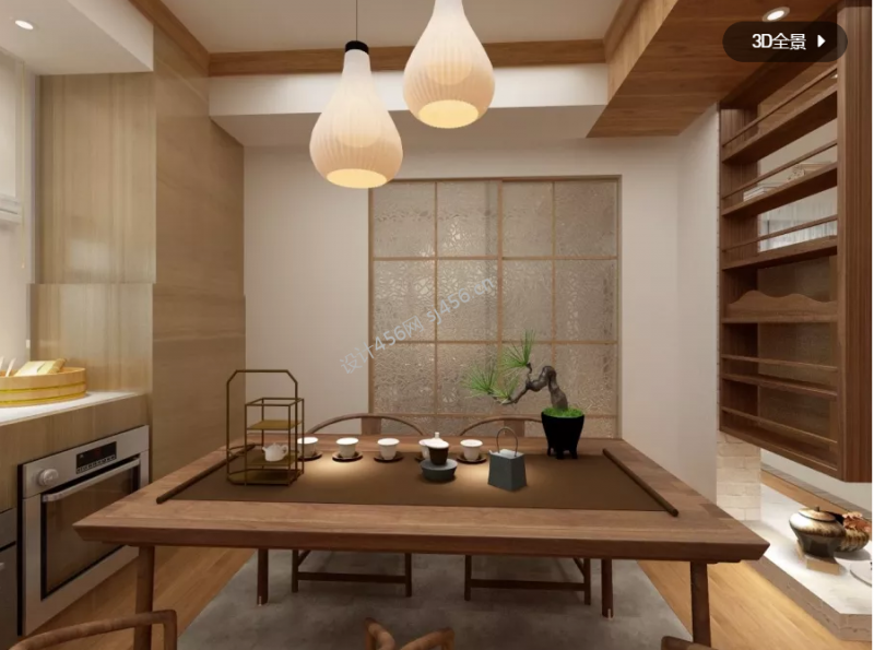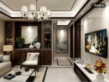 外滩一号108平三居新中式风效果图
