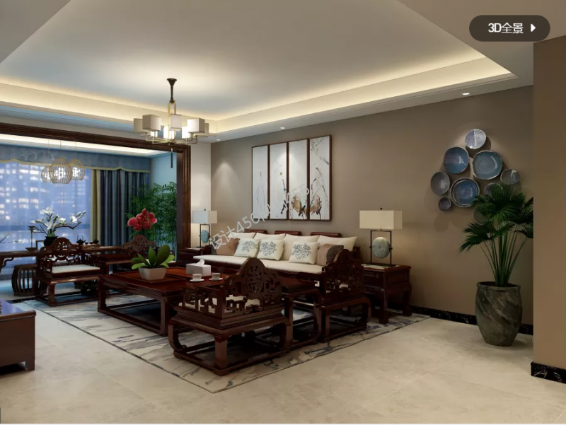 居然之家 建业森林半岛152平米三居室新中式风格装修设计效果图