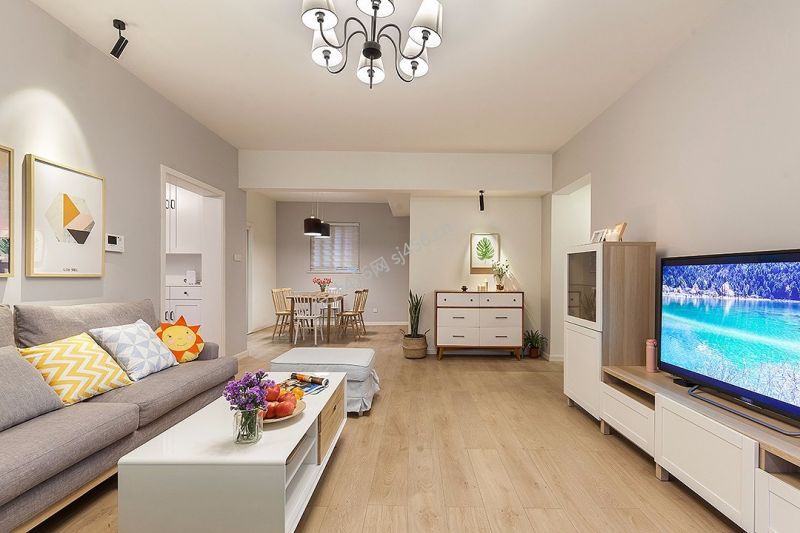 美伦香颂简约北欧110平米三室两厅装修案例风效果图