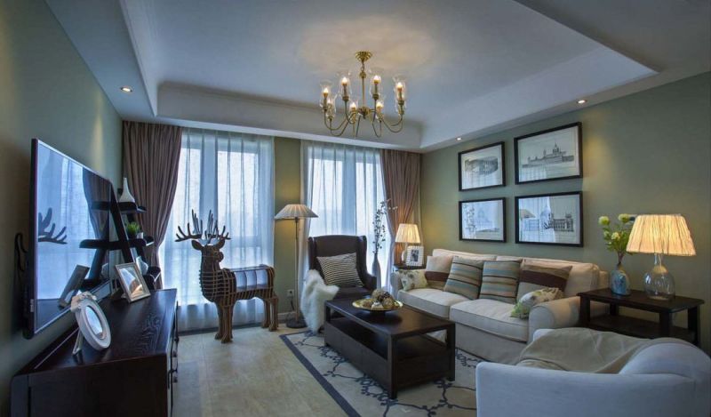 云峰国际美式风格140平米三室两厅装修案例