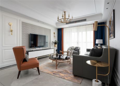 九洲城轻奢美式风140平米四室两厅装修案例风效果图