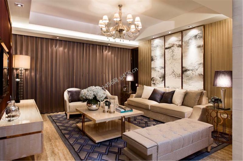 现代轻奢风115平米三室两厅沙发背景墙装修效果图
