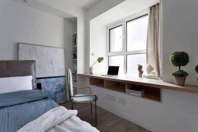 3、将飘窗改造成为书桌,这种就非常适合那些房间可利用面积不大但是同时又急需要一个学习区域的人,书桌的两侧也可以设计成为书柜或者是储物柜,可以放一些书本等物品。