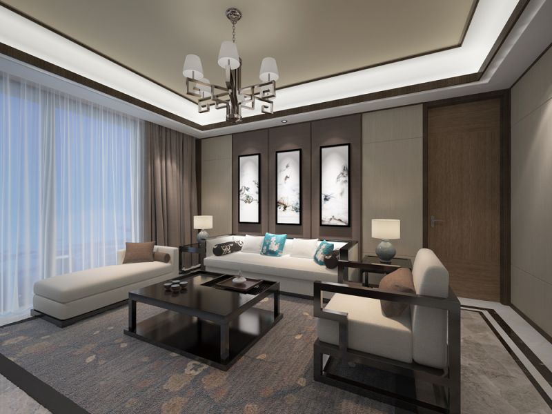 汉德九州城新中式91平米三室两厅装修案例