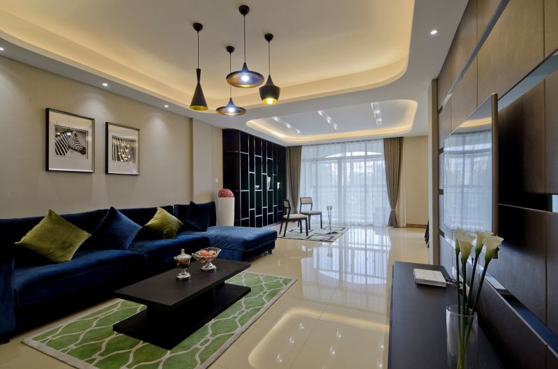 中骏雍景湾新中式风格110平米三室两厅装修案例