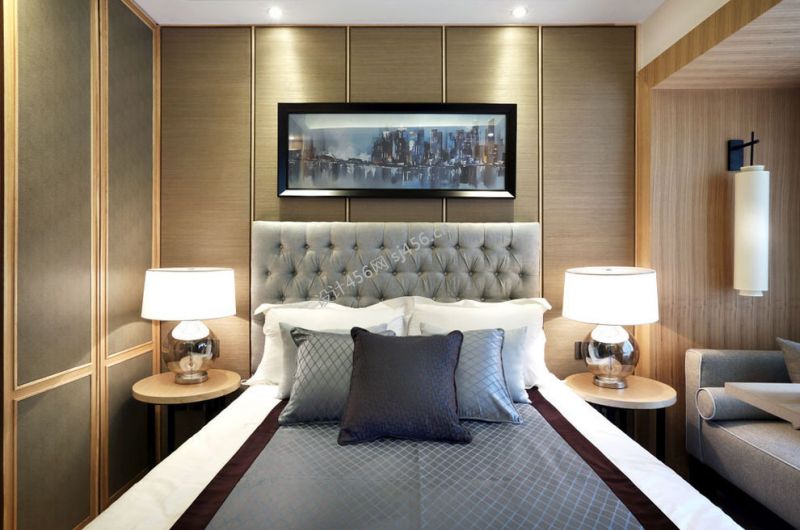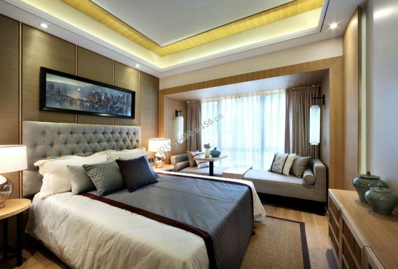 中式风格106平米三室两厅卧室床头装修效果图欣赏