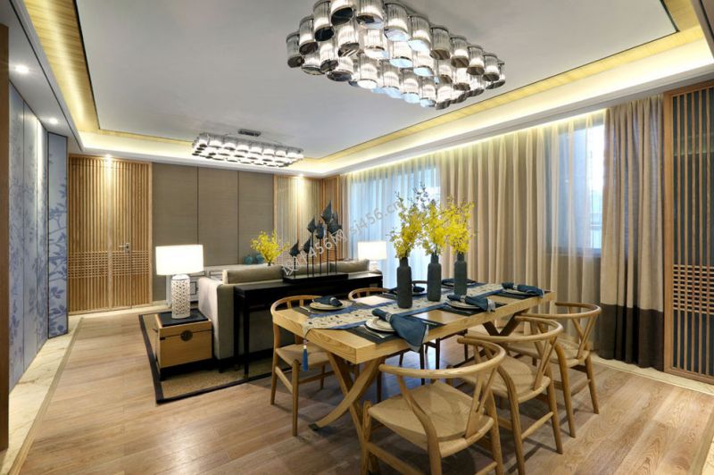 云星钱隆誉园中式风格106平米三室两厅装修案例风效果图