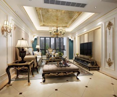 文乐山水上境欧式风格146平米三室两厅装修案例风效果图