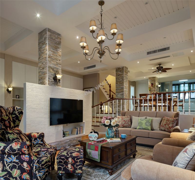 和昌花与墅美式风格177平米别墅装修案例风效果图