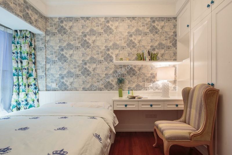 时尚美式143平米三室两厅卧室床头家装效果图大全