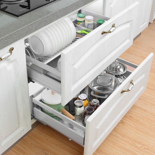2、拉篮内部配置很重要,特别是滑轨,要具有一定的承重量,所以要选择材质较厚、顺滑、噪音小的滑轨。