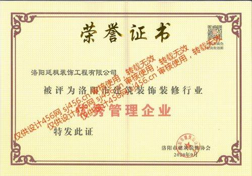 洛阳延枫装饰工程有限公司,是一家集室内外装饰设计、预算、施工于一体的二级资质装饰公司。成立于 2009 年 2 月,注册资金2060万元。主要承接各种装饰工程,家居装饰,室内设计,工程设计,办公装饰,酒店装修,会所及娱乐场所装饰设计等装饰装修类工程。 获得315诚信经营单位,2019年度优秀企业,2020年金口碑装饰,2020年重点扶持装饰企业,2020年诚信“红榜”企业,2020年度河南省建设工程“中州杯”优质工程奖,3A信用企业,诚信先进企业,优秀管理企业,装饰装修安全文明工地等荣誉,是洛阳市建筑装饰协会副会长单位。 一直以来,我公司始终秉承“诚信铸就品质,质量赢得市场”的理念,引领行业持久创新。