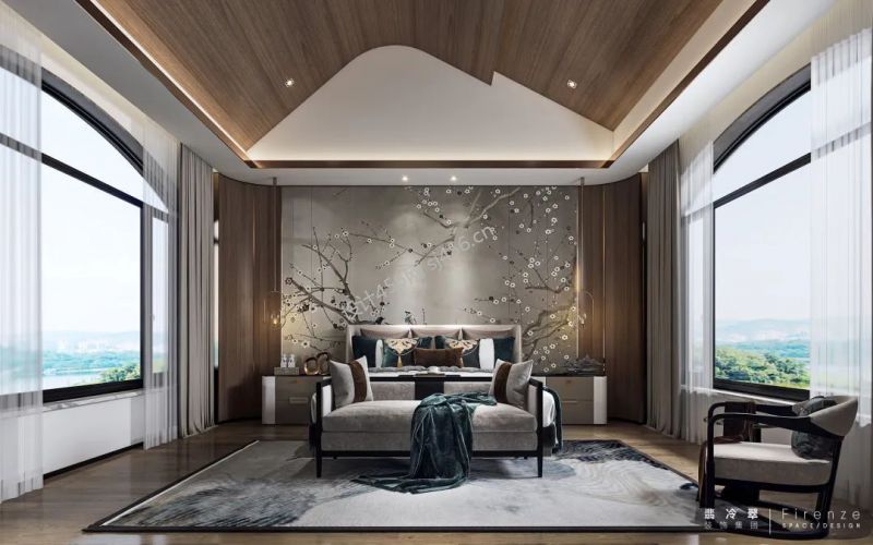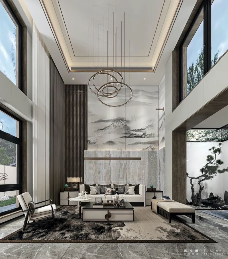 洛阳翡冷翠装饰 龙门一号新中式风格295平米别墅装修案例