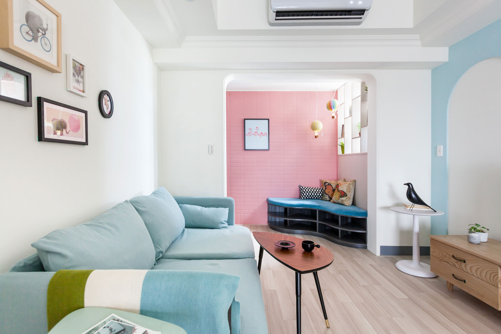 装修好之后,一些家具家电进场,摆放好之后的实际占用的面积和你预想的有些偏差,同样会存在一些狭长的空间,我们可以在这些空间中摆放置物架增加收纳空间。