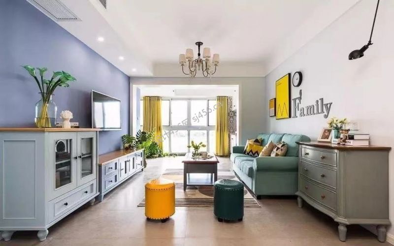 113㎡三居室美式风格客厅装修效果图