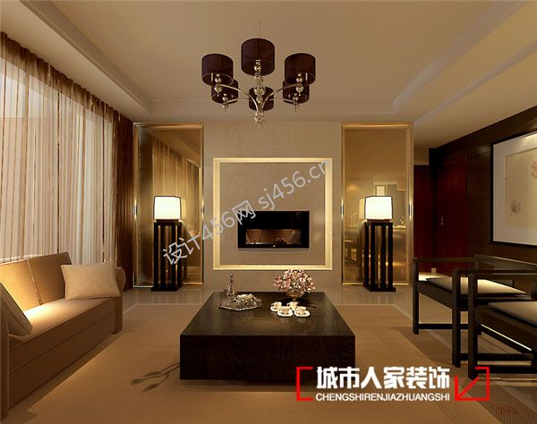 长江现代城110平米三居室中式风格客厅装修效果图