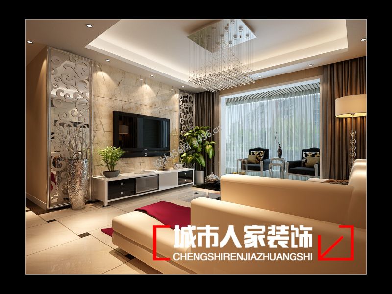 恒利山水123平米三居室现代风格装修效果图风效果图