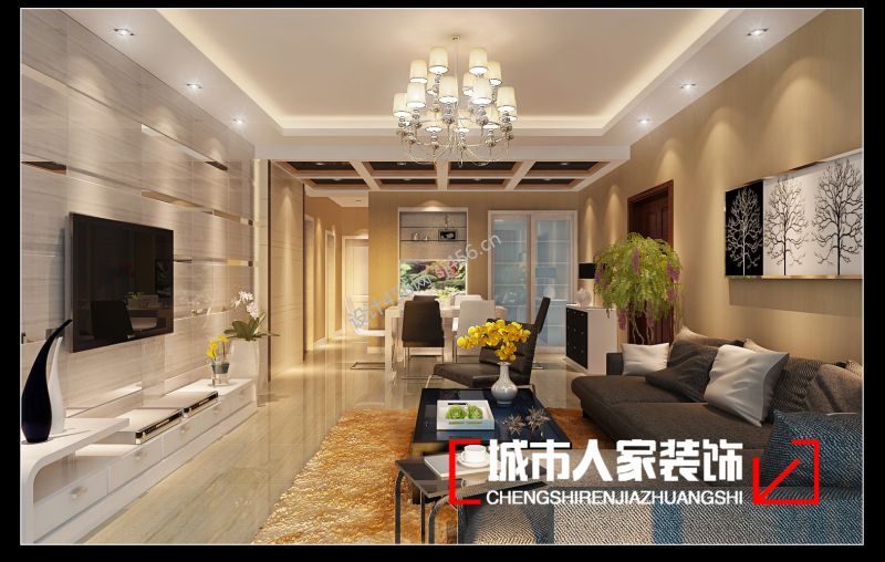 恒利山水123平米三居室现代风格装修效果图风效果图