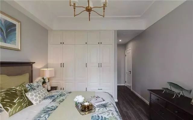 卧室非常注重生活的舒适度和实用性,顶天立地式的衣柜设计,充分满足业主的衣物收纳需求。