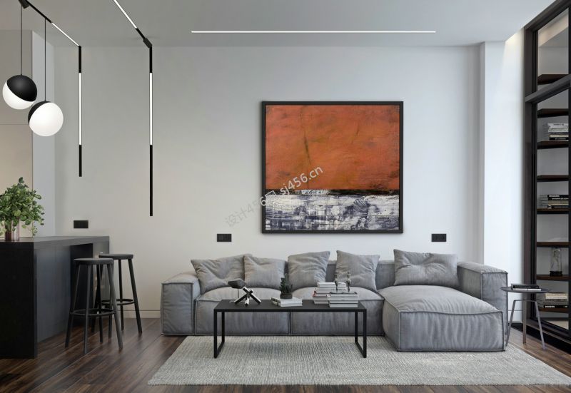孔望尚府145平极简风格客厅灰色沙发装修图片