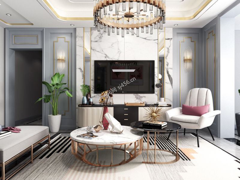 现代轻奢风格三居165平装修设计效果图风效果图
