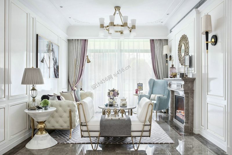 枫林湾简约美式风格家庭客厅地毯装饰装修图